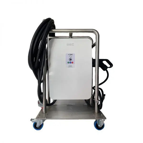 - Caractéristiques : roulete 360°, cordon véhicule type 2S mâle / femelle 3, arrêt d’urgence, cordon d’alimentation avec connecteur mâle industriel HYDRA 10m